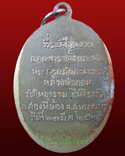เหรียญหลวงพ่อขอม วัดไผ่โรงวัว (วัดโพธาราม) อ.สองพี่น้อง จ.สุพรรณบุรี ปี พ.ศ. 2511 ฉลองตราตั้งและพัด